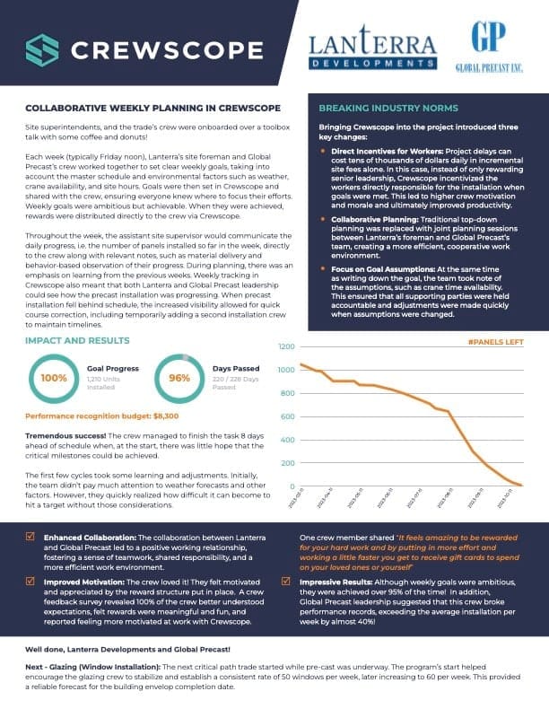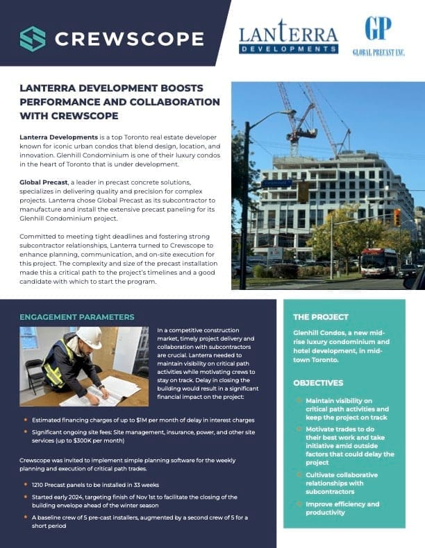 Lanterra and Global Precast saved 8 days on the critical path with Crewscope.